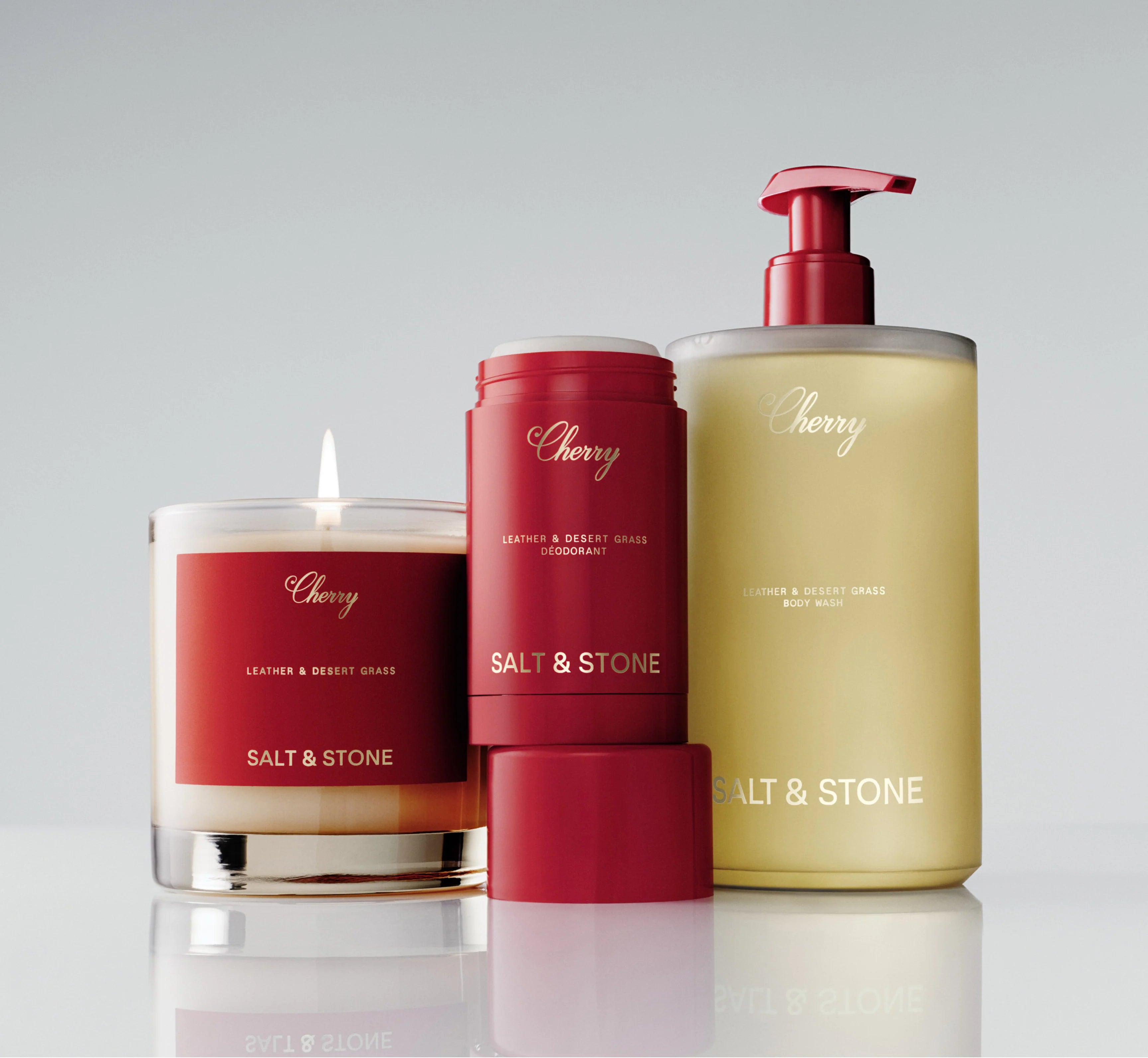 Elevate your space with a cleaner home fragrance—in the smooth, rich Cherry collaboration scent, Leather & Desert Grass.
