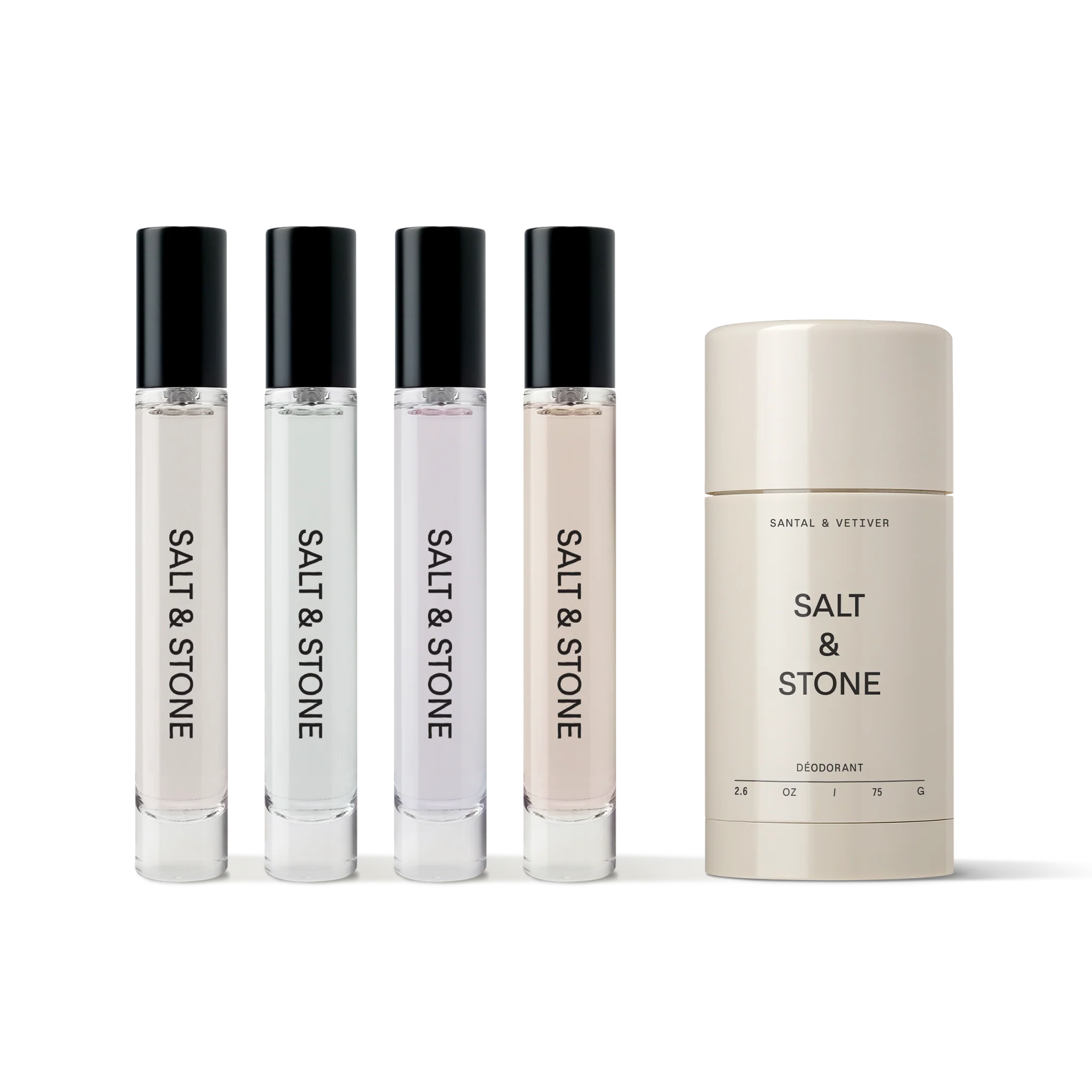 The award-winning full-sized deodorant paired with four body mist scents in a travel-friendly mini set—perfect to try, gift, or take anywhere.
